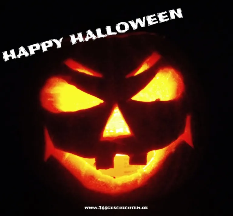 Papa holte die Schubkarre aus dem Schuppen, wuchtete den riesigen Kürbis, den er vor ein paar Tagen im Garten geerntet hatte darauf und schob ihn vor das Haus. Das gruselige Gesicht hatte bereits eingeschnitzt und eine flackernde Lampe eingebaut.